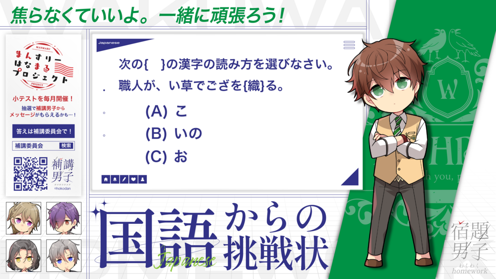フォロワー以上 宿題男子📗国語第77回 HOMEWORK 宿題男子 国語 出題 解答 補講委員会 - 『補講男子』公式ファンクラブ 2025/10/06 17:00 フォロー Bitfan IDでログイン パスワードを忘れた方はこちら ログインできない場合 ログインしたままにする または Xでログイン Facebookでログイン Appleでサインイン Bitfan IDとは Bitfan IDを未登録の方 Bitfan IDとは何ですか Bitfan IDは本サービスを利用するために必要なアカウントとなっております。 外部SNSアカウントを利用したご登録、または任意のメールアドレスとパスワードを利用したご登録ができます。