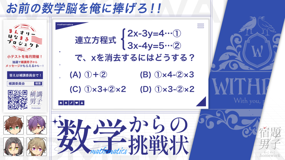 フォロワー以上 宿題男子📐数学第77回 HOMEWORK 宿題男子 出題 解答 数学 補講委員会 - 『補講男子』公式ファンクラブ 2025/10/08 17:00 フォロー Bitfan IDでログイン パスワードを忘れた方はこちら ログインできない場合 ログインしたままにする または Xでログイン Facebookでログイン Appleでサインイン Bitfan IDとは Bitfan IDを未登録の方 Bitfan IDとは何ですか Bitfan IDは本サービスを利用するために必要なアカウントとなっております。 外部SNSアカウントを利用したご登録、または任意のメールアドレスとパスワードを利用したご登録ができます。
